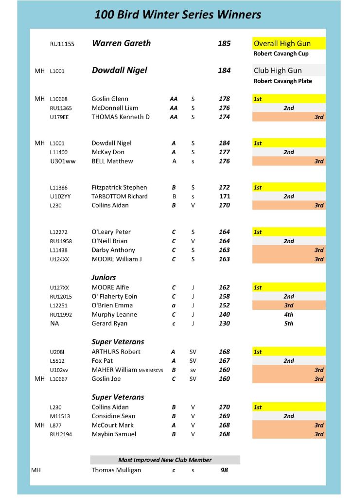 This year years over all High Gun (185 x 200) was Gareth Warren and in fairness it was very well deserved and in turn he received the Robert Cavanagh Cup.